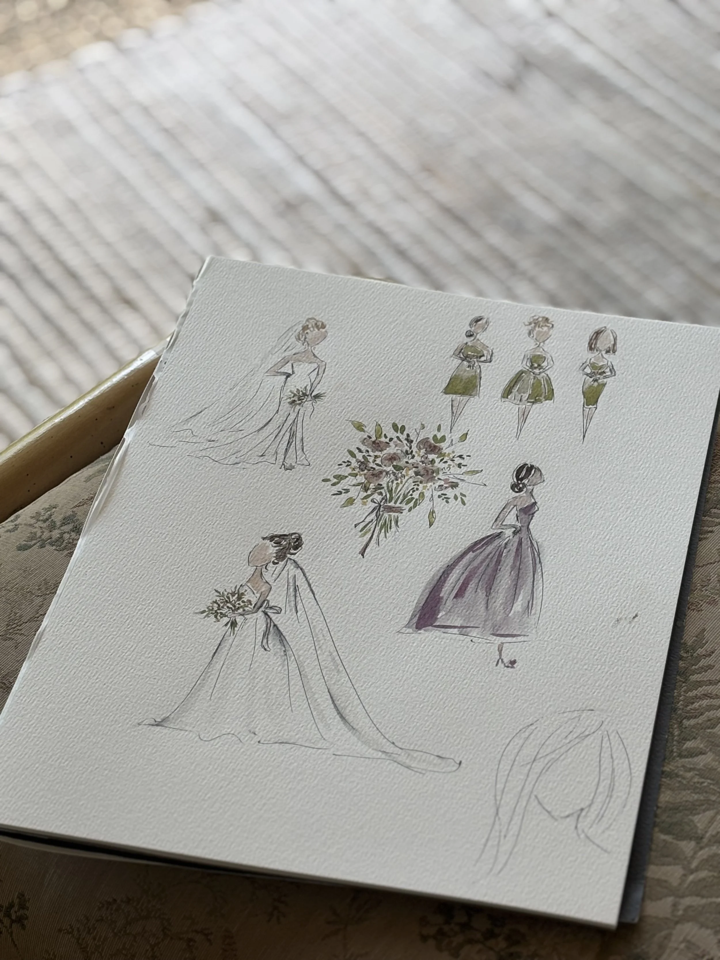 • If your event is a wedding, take advantage of the bridesmaid or groomsman gift package I offer. A watercolor painting of the bride or groom with each member of their wedding party.